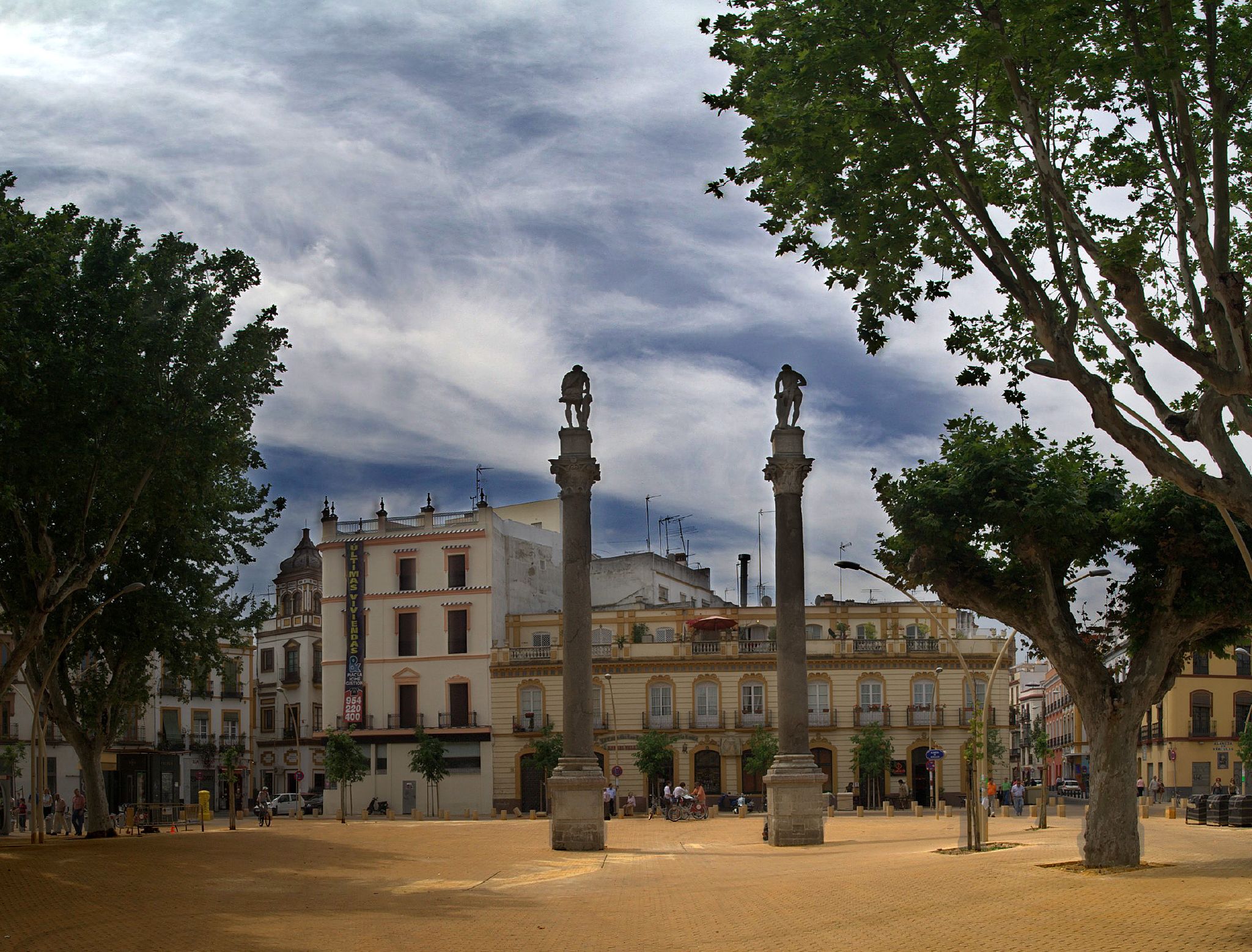 - La Alameda de Hércules : Cette immense place est le lieu de rencontre des jeunes Sévillans. Ce lieu est de style alternatif, il y en a pour tous les goûts, pour tous les styles et pour tous les âges. En général, les gens organisent des botellones (apéros géants) mais tout se passe dans la bonne humeur. Il y a également des bars tout autour de la place. Profile type : Personne tranquille qui préfère boire un verre dehors et qui fuit la masse.