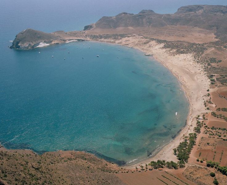 Après la Cala de Monsul, à environ 2 km, on arrive à cette autre plage d’Almeria, appelée Playa de la Media Luna (Plage de la Demie Lune). Son nom vient de sa forme, une demie lune de sable avec des formations de rochers, de matériel volcanique, des deux côtés, parfaits pour s’abriter à leur ombre. La plage de la Media Luna fait partie du Parc Natural Cabo de Gata-Níjar.